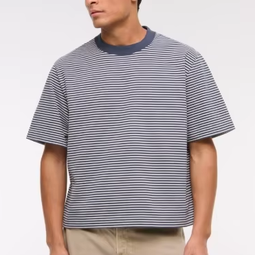 Men Plain Color Oversized Tshirt Cotton Sweat Striped Crew Neckt T-shirt