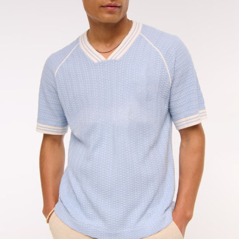 Men Custom Pattern Contrast Color Striped Cuff V-neck Cotton T-shirt Breathable Oversized t Shirt
