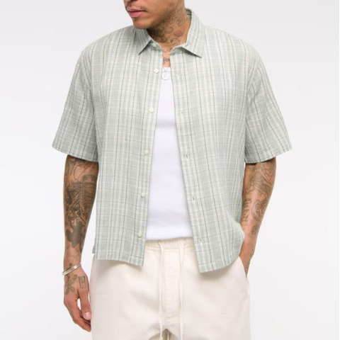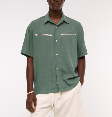 Men Casual Cotton Short Sleeve Shirt 100% Cotton Embroidered Technics Loose Fit Oversized Print Pattern 180 Grams Fabric