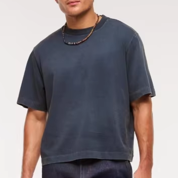Men Plain Color Acid Wash Vintage Custom Embroidery Crew Neck Tshirt Oversized Cotton t Shirt