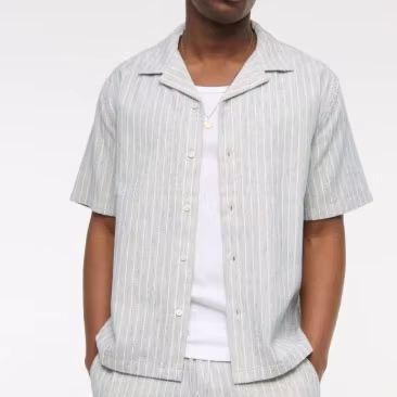 Men Casual Cotton Short Sleeve Shirt 100% Cotton Stand Collar Oversized Linen with Striped Pattern for Summer